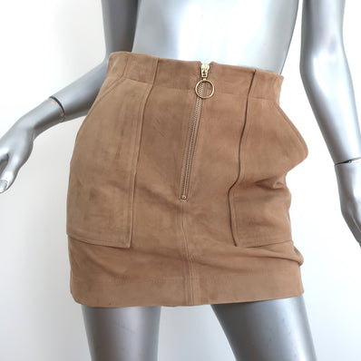 Intermix Magda Suede Zip-Front Mini Skirt Camel Size 0 NEW