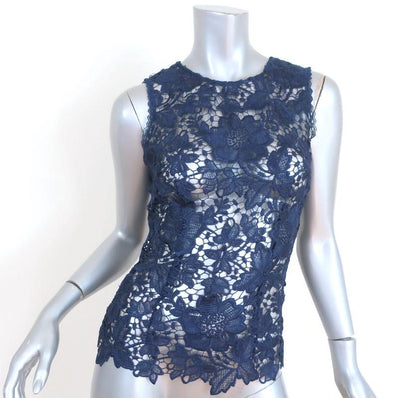 Intermix Lace Top Navy Size Small Sleeveless Zip-Back