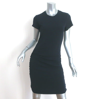 James Perse Classic Skinny T-Shirt Dress Black Ruched Stretch Jersey S...