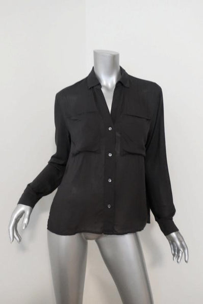 James Perse Relaxed Chiffon Shirt Charcoal Size 0 Long Sleeve Button D...