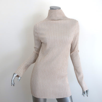 Jil Sander Gingham Long Sleeve Turtleneck Top Beige/White Cotton-Blend...