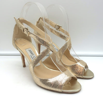 Jimmy Choo Crisscross Sandals Emily Gold Cracked Leather Size 35.5