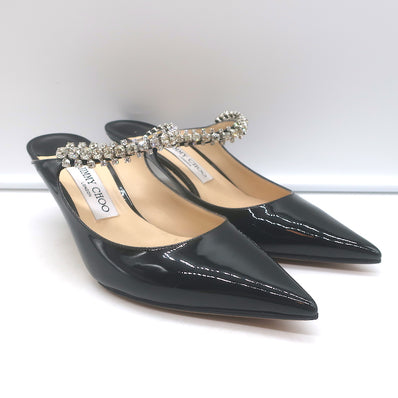 Jimmy Choo Bing 65 Crystal Strap Mules Black Patent Leather Size 39