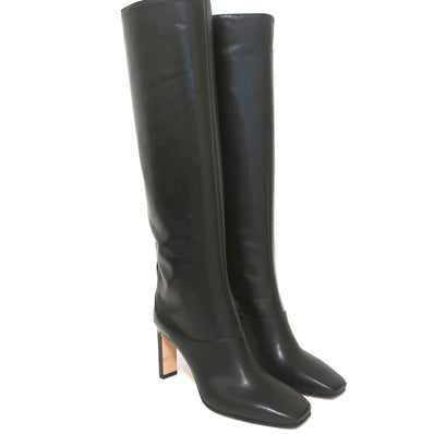 Jimmy Choo Mahesa Square Toe Knee High Boots Black Leather Size 36 NEW