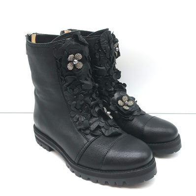 Jimmy Choo Havana Flower-Embellished Combat Boots Black Leather Size 3...