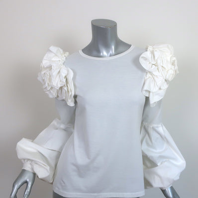 Johanna Ortiz Kyoto Ruffled Shoulder Top White Size 0 Long Sleeve Blouse