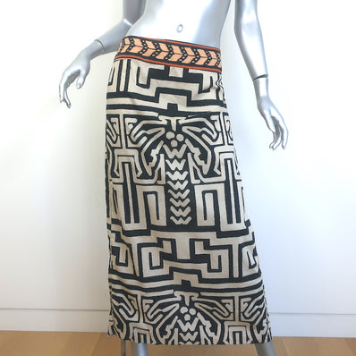 Johanna Ortiz Mozambique Ankle Skirt Black/Ecru Printed Cotton Size 8