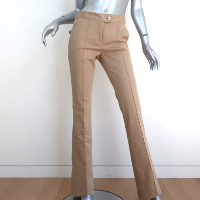 Vintage John Galliano Pintuck Flared Pants Khaki Stretch Cotton Size US 6