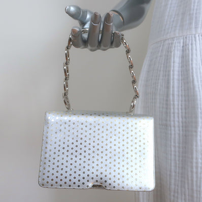 Judith Leiber Mini Evening Bag Silver & Gold Metallic Polka Dot Leather