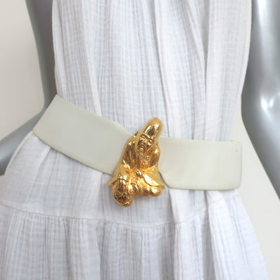 Judith Leiber Gold Man Buckle Wide Belt Cream Leather One Size
