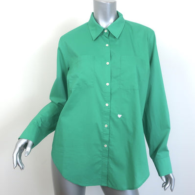 Kerri Rosenthal Heart Elbow Patch Shirt Green Size Large Long Sleeve Top