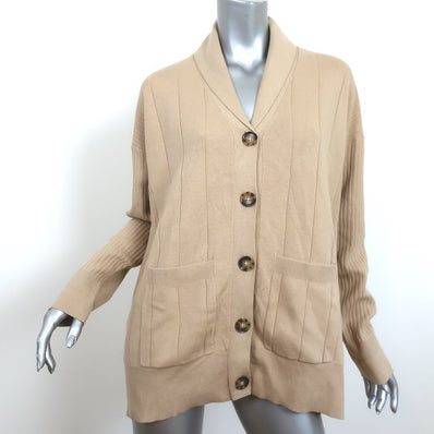 La Ligne Molly Cardigan Beige Ribbed Cotton-Cashmere Size Small