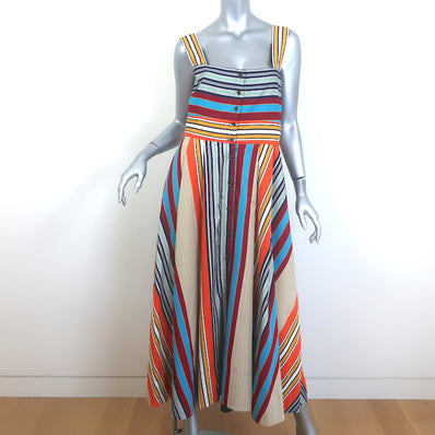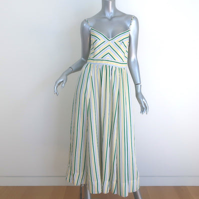 La Ligne Tracey Striped Midi Dress Yellow/Green Size Small