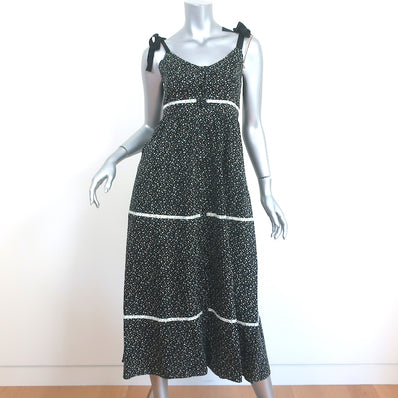 La Ligne Kate Tiered Midi Dress Black Floral Print Cotton Size Extra S...