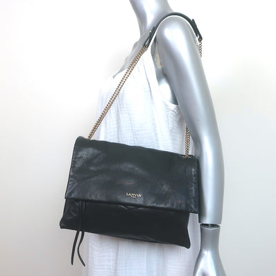 Lanvin Sugar Medium Shoulder Bag Black Quilted Lambskin Leather