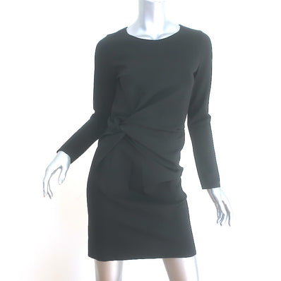 Lanvin Twist-Front Mini Dress Black Stretch Wool Size 36