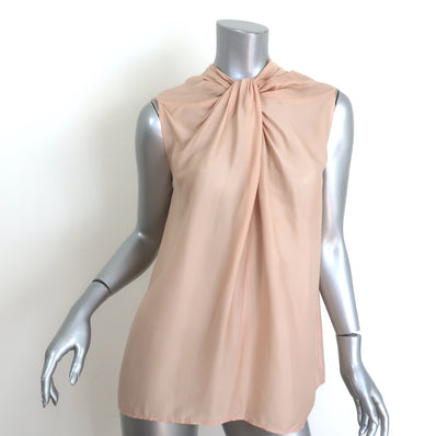 Lanvin Twist-Neck Blouse Peach Silk-Blend Size 38 Sleeveless Top