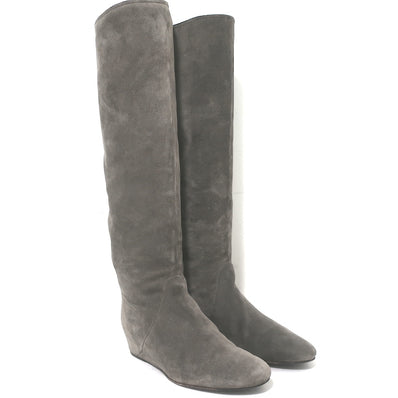 Lanvin Knee High Hidden Wedge Boots Gray Suede Size 39