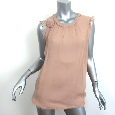 Lanvin Rosette-Embellished Top Nude Chiffon Size Small Sleeveless Blouse