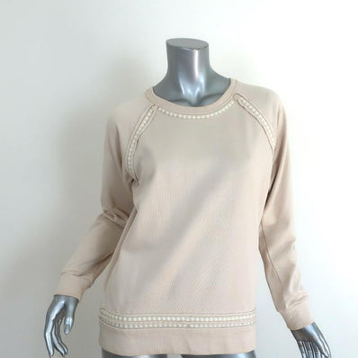 Lanvin Pearl-Trim Sweatshirt Light Beige Cotton Size Small Crewneck Pu...