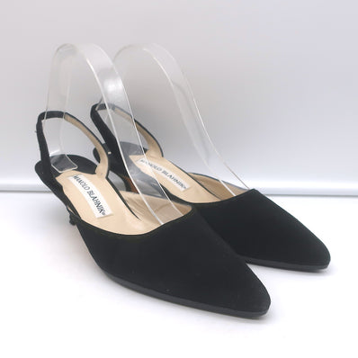 Manolo Blahnik Aspro Low-Heel Slingback Pumps Black Suede Size 35