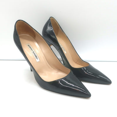 Manolo Blahnik BB Pumps Black Patent Leather Size 38.5 Pointed Toe Heels