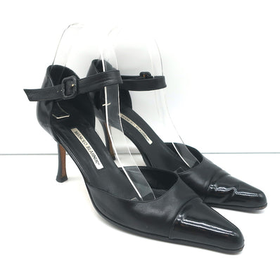 Manolo Blahnik d'Orsay Cap Toe Mary Jane Pumps Black Patent & Leather ...