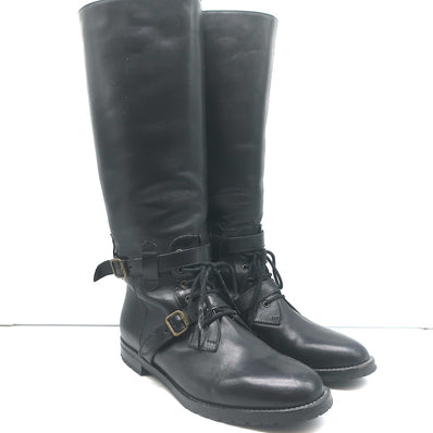 Manolo Blahnik Buckled Riding Boots Black Leather Size 38.5
