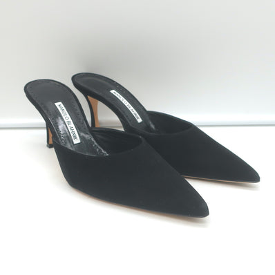 Manolo Blahnik Arriga Mules Black Suede Size 41 Pointed Toe Heels