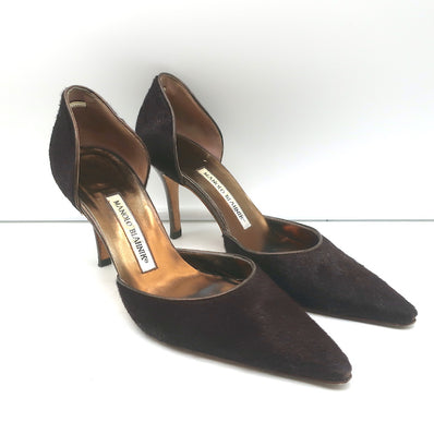 Manolo Blahnik D'Orsay Pumps Dark Brown Calf Hair Size 37 Pointed Toe ...