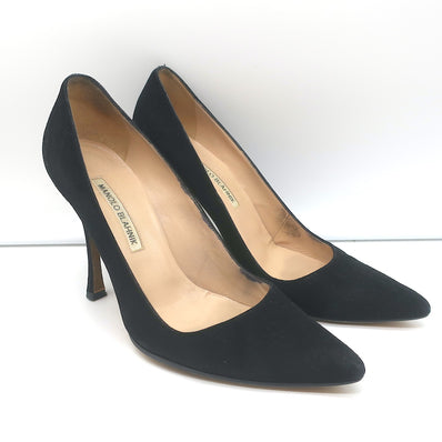Manolo Blahnik BB Pointed Toe Pumps Black Suede Size 36