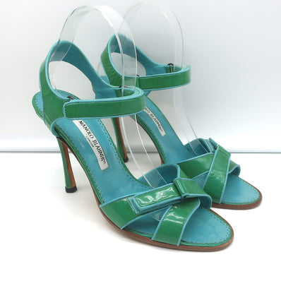 Manolo Blahnik Ankle Strap Sandals Green Patent Leather Size 40 Open T...