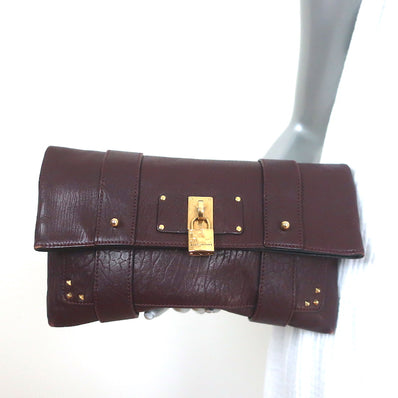 Marc Jacobs Padlock Flap Clutch Burgundy Grained Leather Small Bag