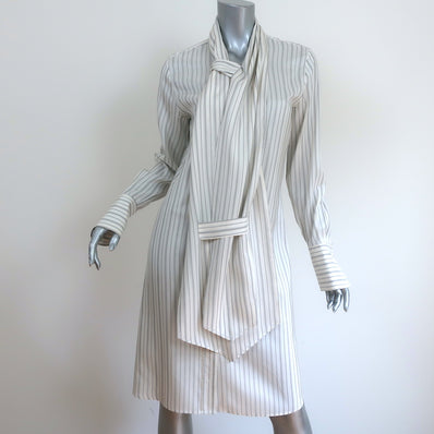 Maison Margiela Scarf Shirtdress Cream Striped Silk Size 42 Long Sleev...
