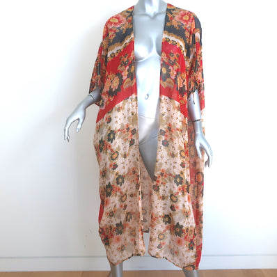 Mes Demoiselles Machu Kimono Jacket Red/Multi Floral Print Cotton One ...