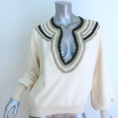 Mes Demoiselles Rosalia Metallic Crochet-Trimmed Sweater Ivory Cotton ...