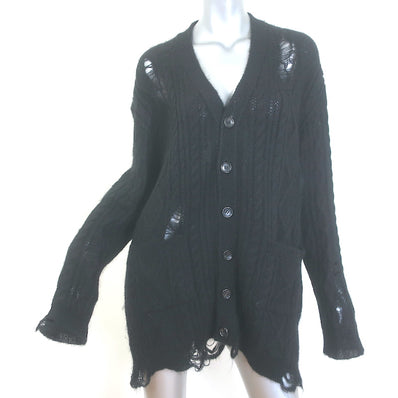 Mihara Yasuhiro Distressed Cable Knit Cardigan Black Mohair-Blend Size 38
