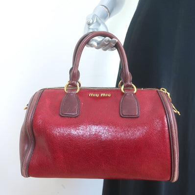 Miu Miu Colorblock Boston Bag Red & Burgundy Leather Medium Crossbody
