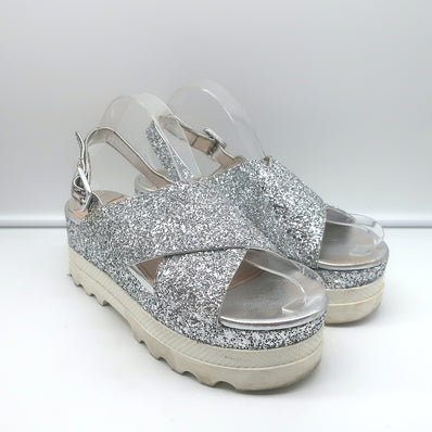 Miu Miu Glitter Crisscross Platform Slingback Sandals Silver Size 40