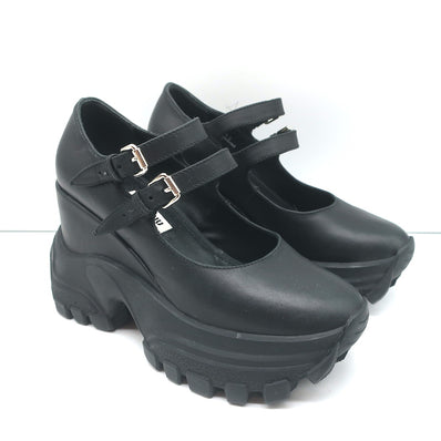 Miu Miu Platform Mary Jane Wedge Sneakers Black Leather Size 35