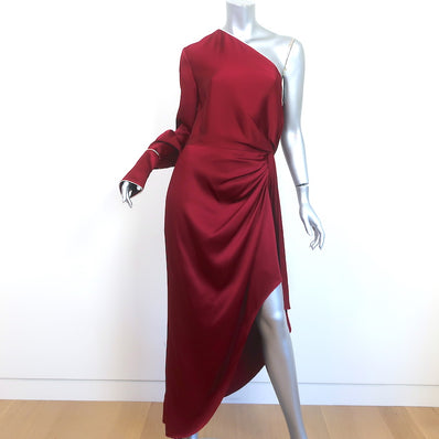 Monse One-Shoulder Pajama Dress Burgundy Satin Size 4