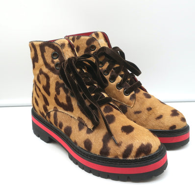 Mr & Mrs Italy Leopard Print Pony Hair Combat Boots Size 37 Lace-Up An...