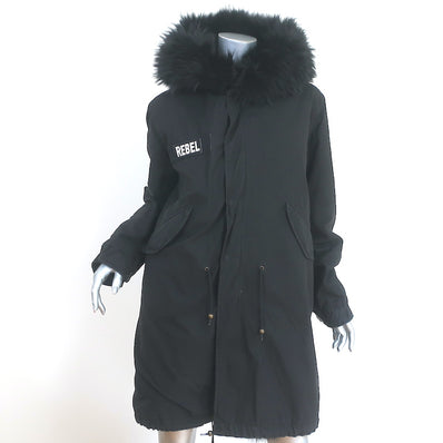 Mr & Mrs Italy Army Parka Coat Black Fox Fur-Lined Cotton Canvas Size ...