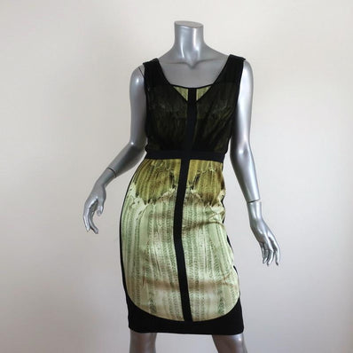 Narciso Rodriguez Dress Black/Green Mesh-Overlay Feather Print Satin S...