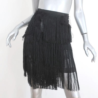 Nina Ricci Fringe Skirt Black Embroidered Taffeta Size 34