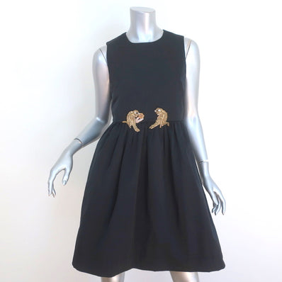 No. 21 Beaded Bird Dress Black Taffeta Size 40 Sleeveless Fit & Flare