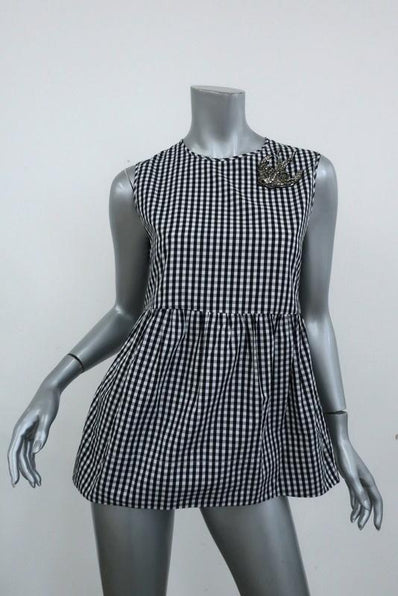 No. 21 Crystal Bird Peplum Top Black & White Gingham Size 40 Sleeveles...