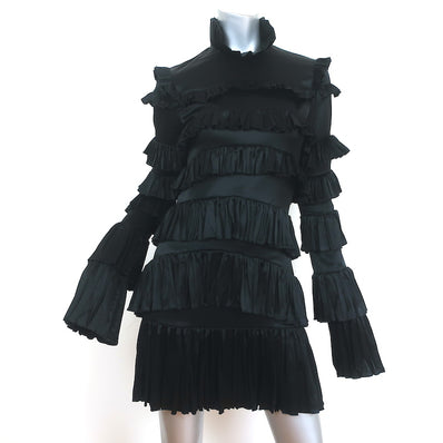 Off-White c/o Virgil Abloh Tiered Ruffle Mini Dress Black Satin Size S...