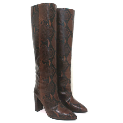 Paris Texas Snakeskin Print Knee High Boots Dark Brown Size 39