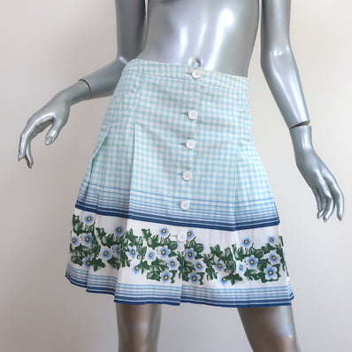 Philosophy di Alberta Ferretti Pleated Skirt Blue Floral Print Gingham...